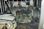 Συντρίμμια της πτήσης American Airlines 77, που έχουν αποκολλήσει από το κυρίως σώμα του αεροσκάφους, φαίνονται στο πάτωμα.