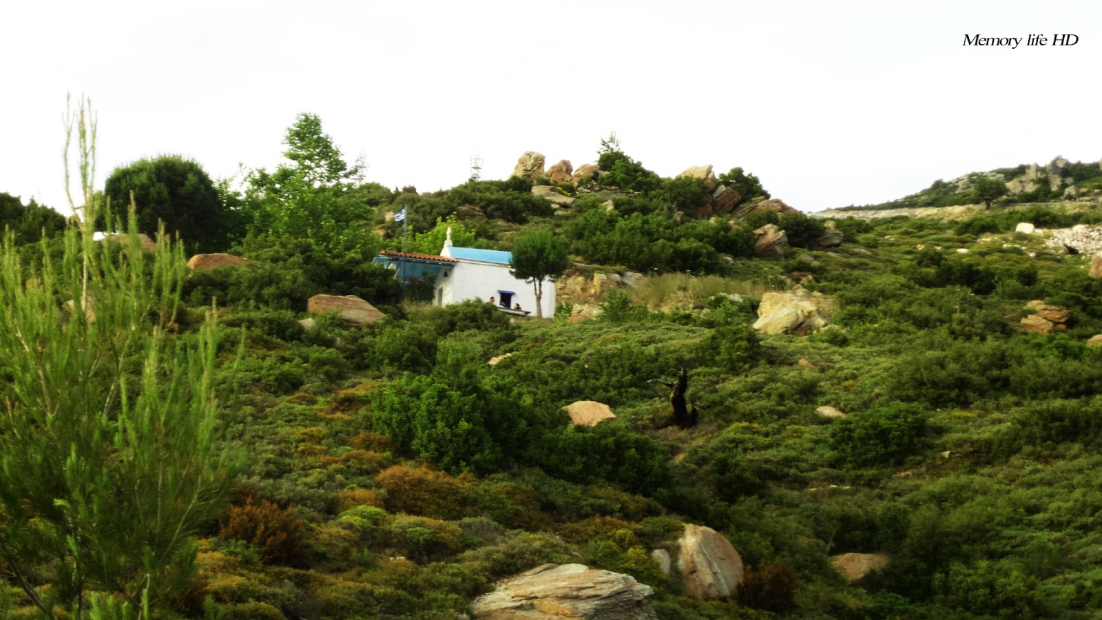 Το εκκλησάκι του αγίου Ιωάννη , με την υπέροχη θέα και τα πλαστικά καρεκλάκια στον εξωτερικό του χώρο για να ξαποσταίνουν οι οδοιπόροι.