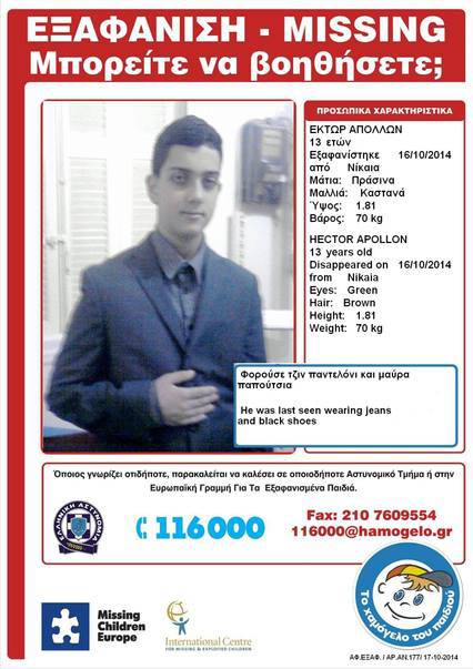 Οποιοσδήποτε έχει κάποια πληροφορία, παρακαλούμε να επικοινωνήσει τηλεφωνικά με τον Οργανισμό μας «Το Χαμόγελο του Παιδιού» όλο το εικοσιτετράωρο (24 ώρες), στην Ευρωπαϊκή Γραμμή για τα Εξαφανισμένα Παιδιά 116.000 καθώς και σε όλα τα Αστυνομικά Τμήματα της χώρας.