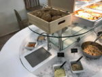 Από τις πρώτες κιόλας ώρες της μέρας θα μας βρείτε εδώ για πρωινό και φρεσκοστυμμένους φυσικούς χυμούς (που μπορείτε να απολαύσετε στο χώρο μας ή να πάρετε μαζί σας)! Ο μπουφές του μεσημεριανού θα δίνει ποικιλία επιλογών σε γεύσεις εμπνευσμένες από την ελληνική και τη διεθνή κουζίνα, μαγειρεμένες πάντα με φρέσκα υλικά ημέρας! Στο μπουφέ θα βρείτε σαλάτες και γλυκά παραγωγής μας!